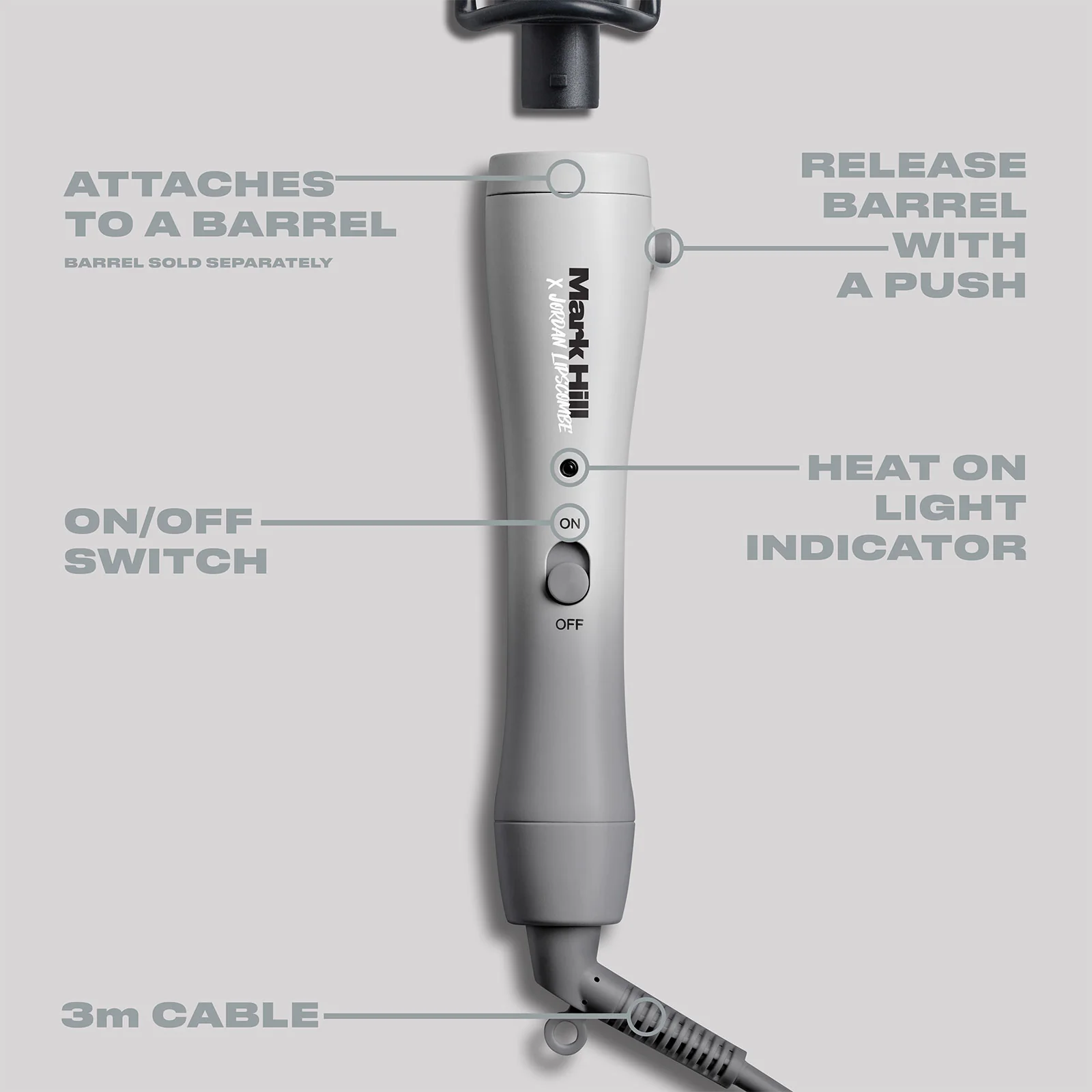 This interchangeable curling wand handle is the first step in creating your custom hair tool. Designed in collaboration with top beauty influencer Jordan Lipscombe, the grey ombre handle powers our range of Pick ‘N’ Mix™ barrels. No more buying multiple hair tools, switch from straightening, to curling to faux blow dry with just one click. This handle is stylist approved, with an extra-long 3m cable and auto shut off features. Next stop, pick your barrel attachment (theres over 14 to choose from in a variety of shapes & colours).