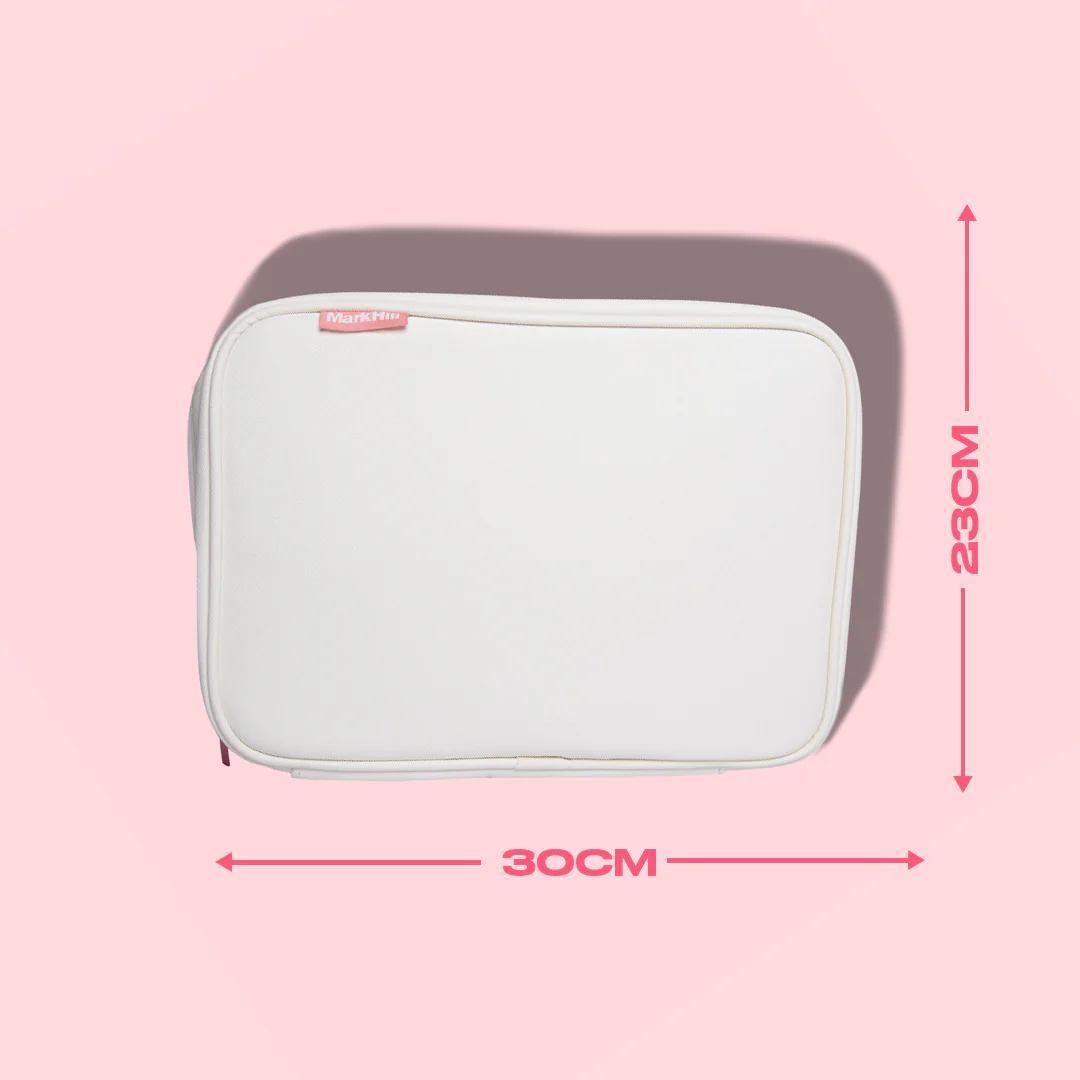 Travel on-the-go just got better. Ensure that your Mark Hill products are kept safe and in pristine condition at all times with our signature White & Baby Pink Piping Travel Bag. The bag is designed big enough to fit your styling tool perfectly, providing added protection and making it easy to take it with you on your travels or use as handy home organisation.