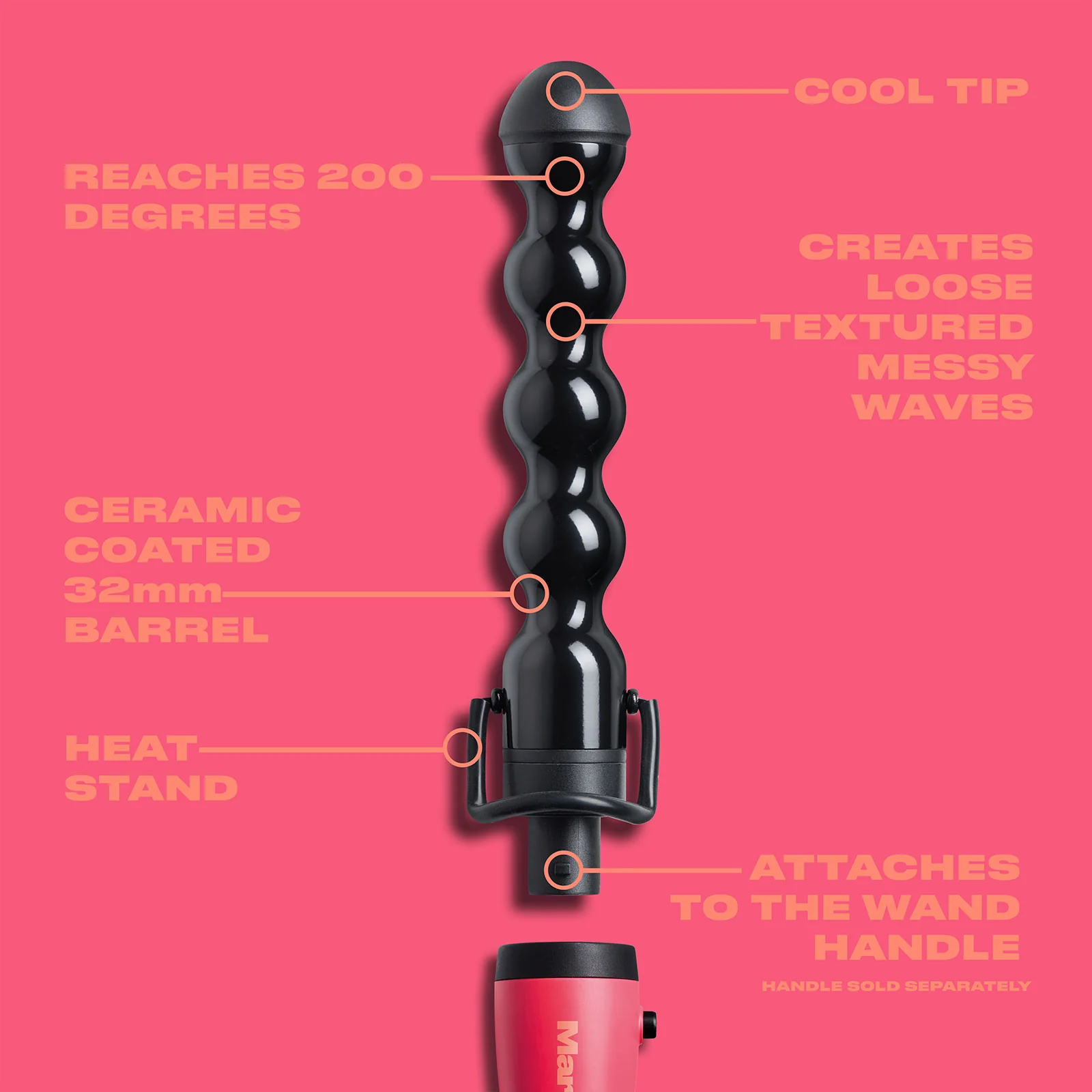 The bubble barrel is perfect for loose, textured, messy, lived in, boho waves and curls. The uniquely shaped ceramic coated barrel is 32mm wide at its widest point and features a cool tip to help hold the barrel without burning your fingers. This barrel reaches up to 200 degrees! Compatible with all of our Pick 'N' Mix handles (sold separately).